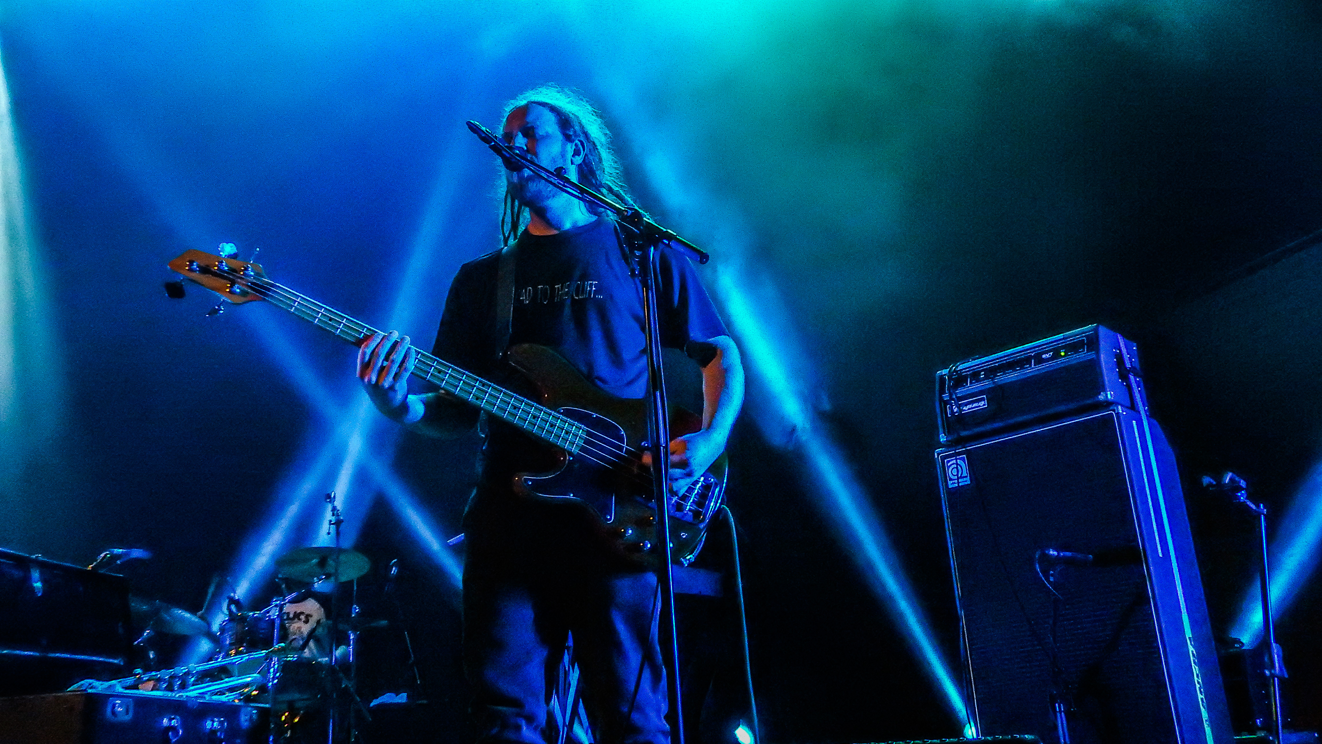 The last band of the night HAD to be Martin Phillipps and The Chills. For once, Martin has gone for a truly talented bunch for his latest incarnation. Not that the others didn’t have their own special skill. But this latest line up really are a cut above. The long dreadlocked Callum Hampton was equally skilled on bass and trumpet, playing both at one time during one track. Also, Erica Scally (Guitar, Keyboards, Violin and Backing Vocals) was all over the shop, skillfully adding plenty of layers to the new material from ‘Scatterbrain’ and the classics, too. ‘Dr’ Oli Wilson added a few bits of improvisation on keyboards to keep things fresh, including some classical nonsense at the start of the student sing-a-long ‘Rolling Moon’, which has been lifted out of its squat into a more hi-brow and legitimate rock song. Of, course the animated antics of drummer Todd Knudson were still available, if a little bit more subdued than normal.
