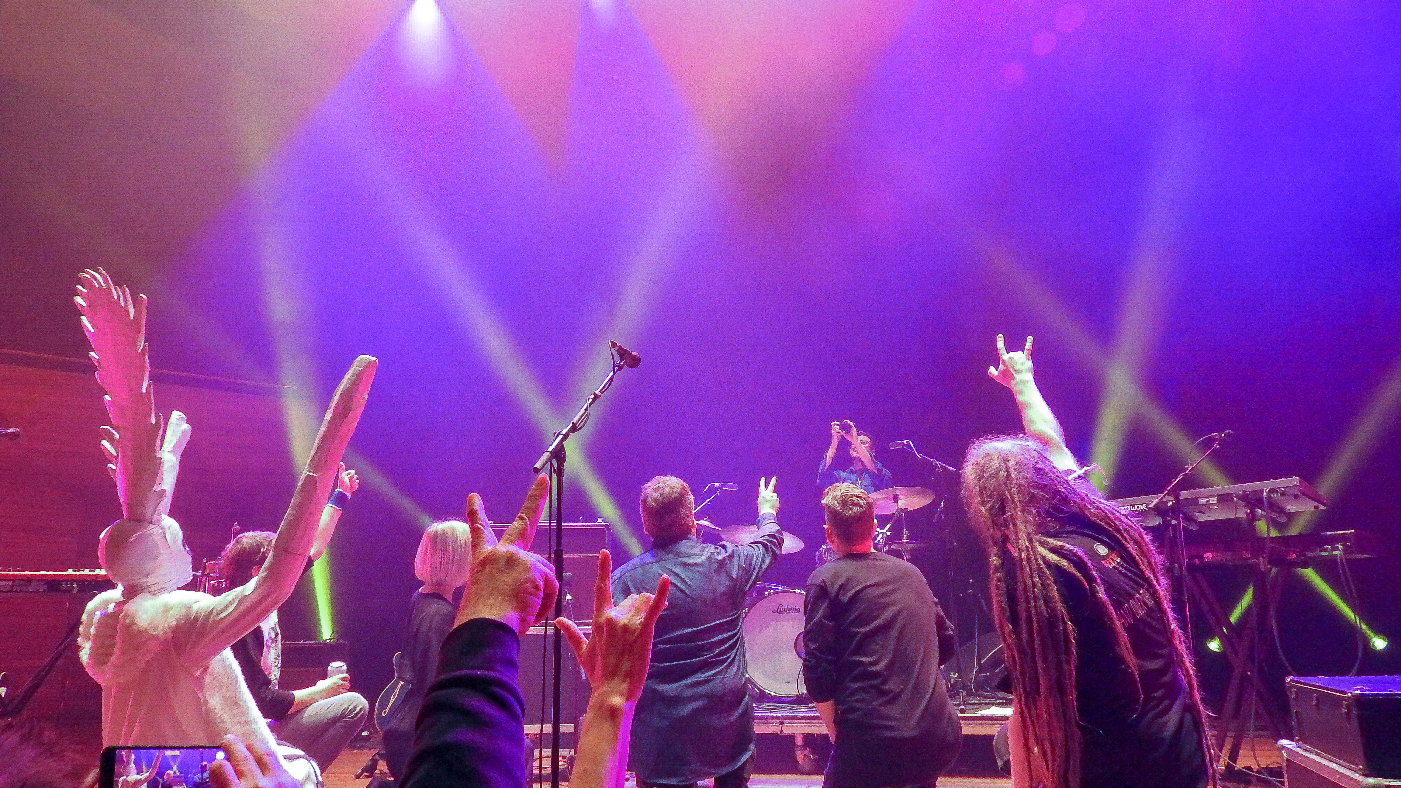 Bouncing around like you’re eighteen again was a little harder for this audience. Most of us, like half the line up were in our mid to late 40’s and 50’s. But very elegantly dress, with good and quirky and expensive threads. That never occurred to me, as I rocked up in my usual 80’s student grunge of black jeans and brushed cotton check shirt (nowadays a designer label). Still, seems I was a bit underdressed for this mob.