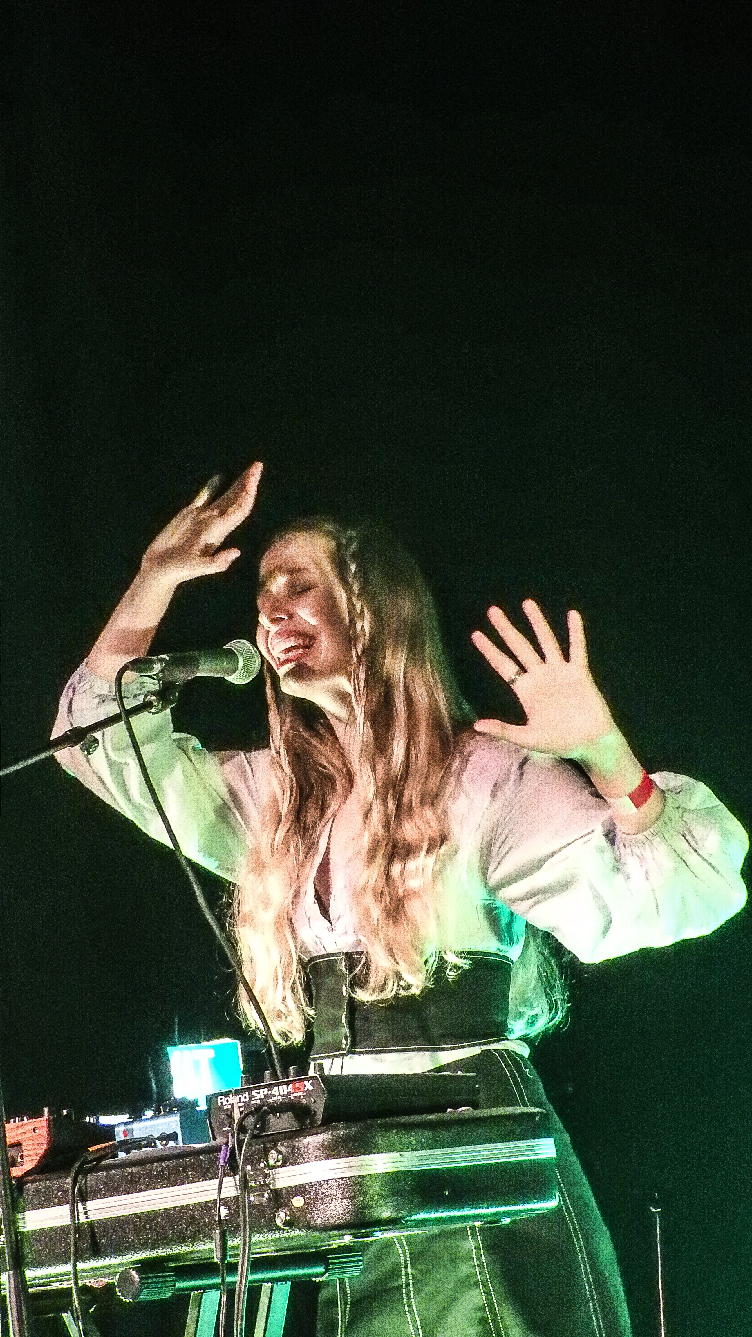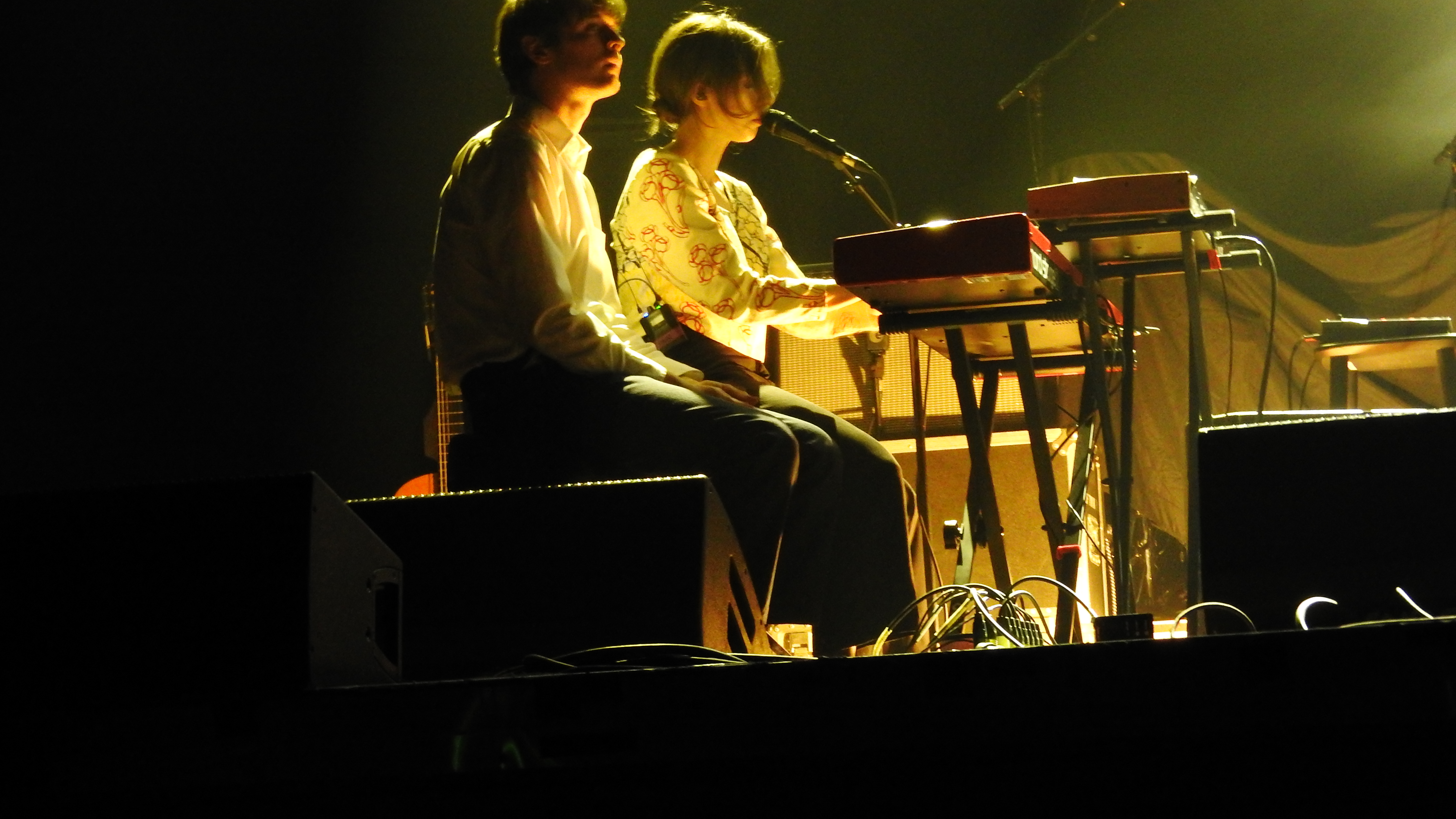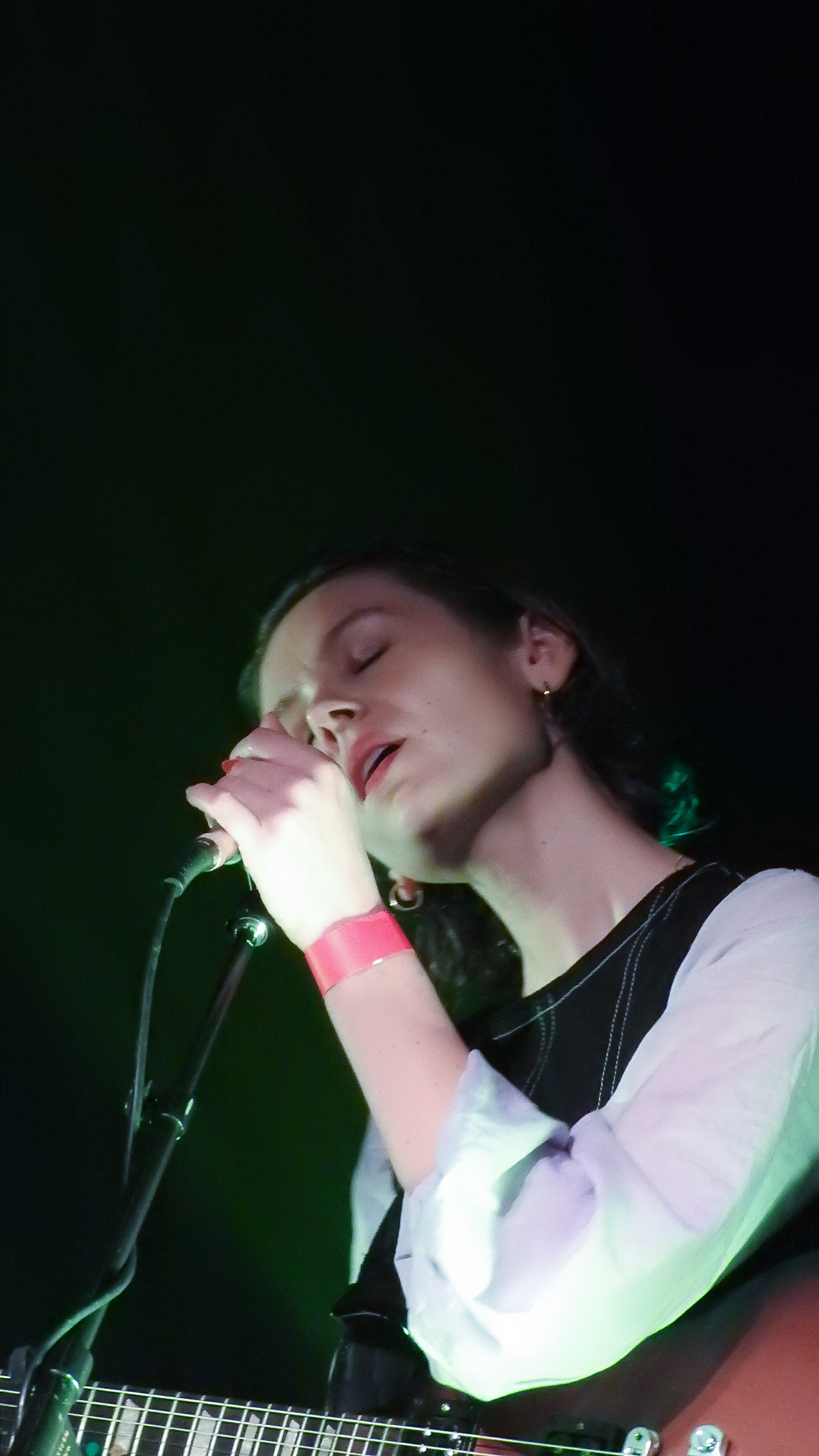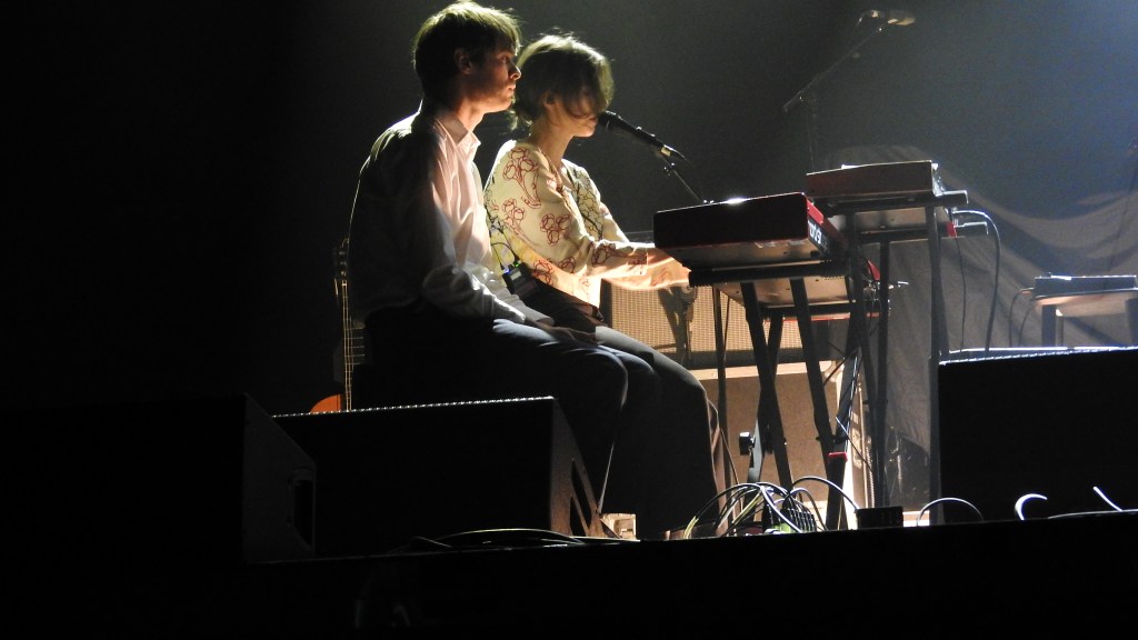 In almost complete darkness save for two spot lights Aldous Harding and her musical partner Huw Evans sat opposite each other on the main stage. As if told to remain as still as possible, Evans provided the subtlest of accompaniments on guitar and keyboards. Like a scolded school boy, he barely moved. The two worked through a simple, paired back set from her catalogues including a starched rendition ‘Living The Classics’, ‘I’m So Sorry’ and ‘The Barrel’. I think I heard ‘Treasure’ in there, too.