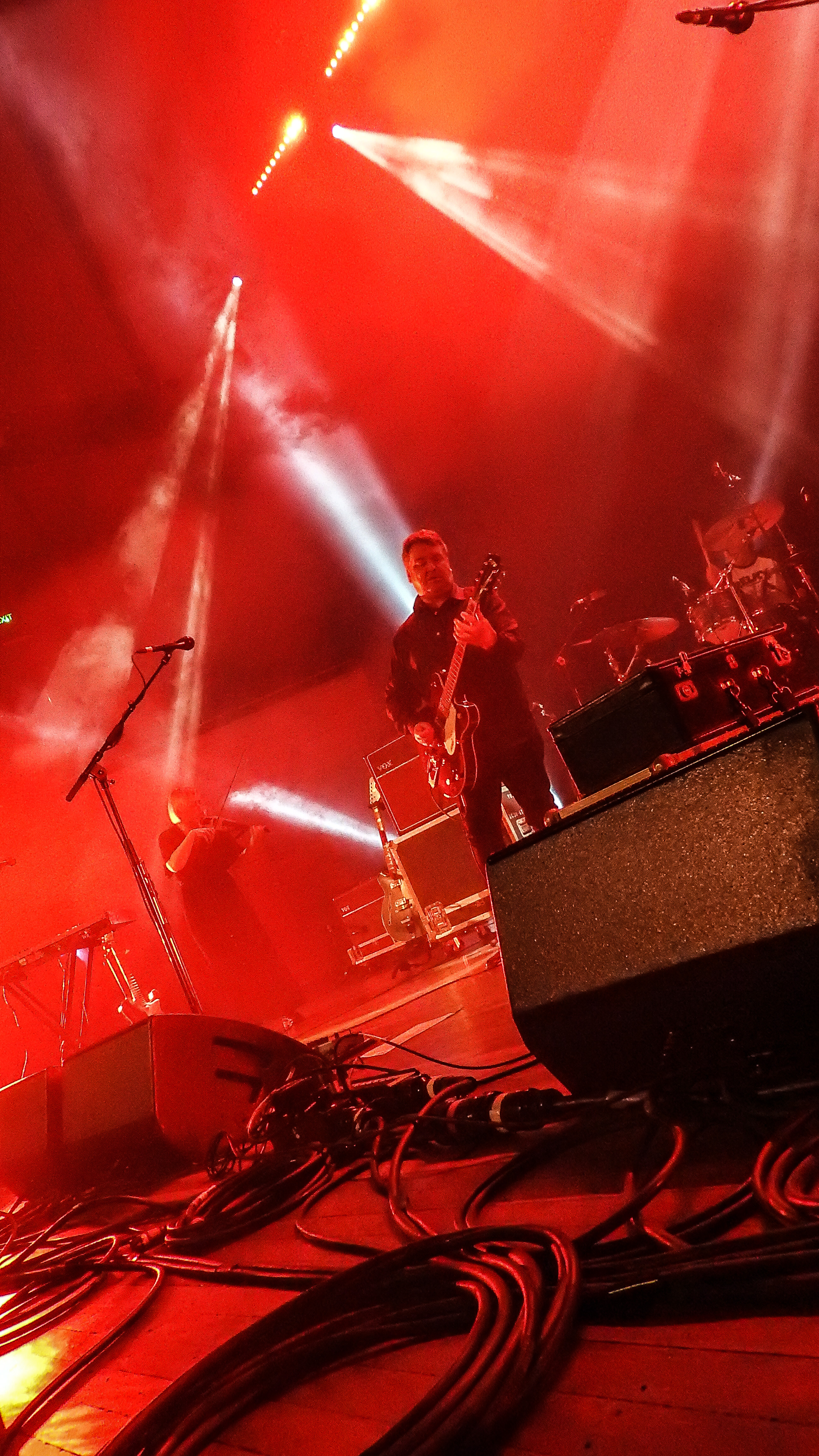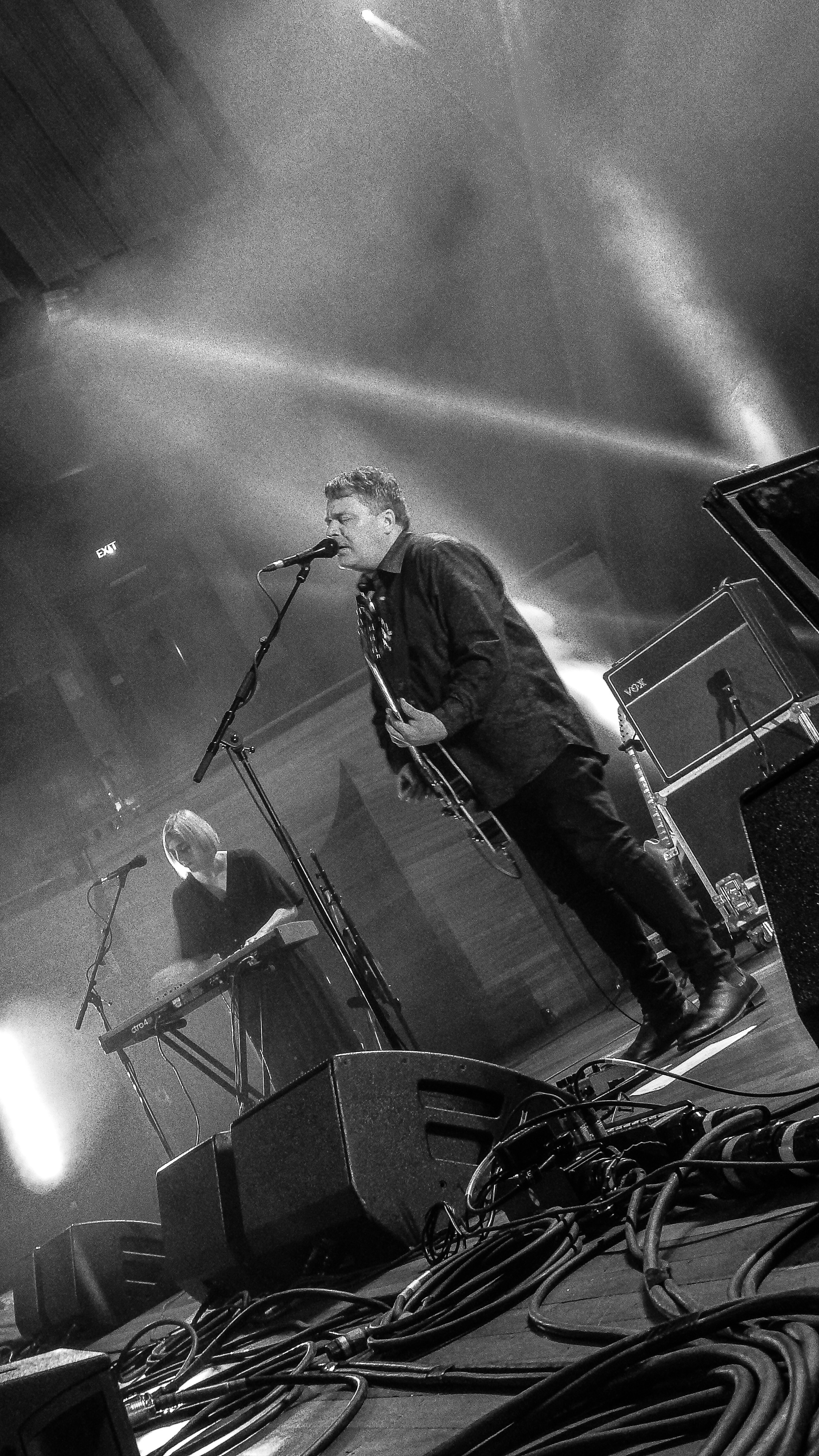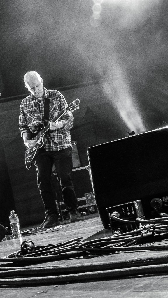The marking of passing years were not lost on The Bat’s Robert Scott either. “Imagine what it’s be like in another 40 years,” he quipped, “as we come back on in wheel chairs and zimmer- frames.” Hopefully, they’ll still be as cool as they were tonight, as we all took a trip down memory lane with a selection of best moments from the band’s extensive and ongoing catalogue – ‘Made Up In Blue’, ‘Block Of Wood’, and of course, ‘North by North’, which finished the set. In between we got a selection of newer stuff from ‘Foothills’ and lost albums – a quick survey from over the years included ‘Trade in Silence’, a strumming ‘Field of Vision’ and a nicely done ‘’Singletons’. All appreciated as the crowd abandoned their seats to politely mosh around the big stage.