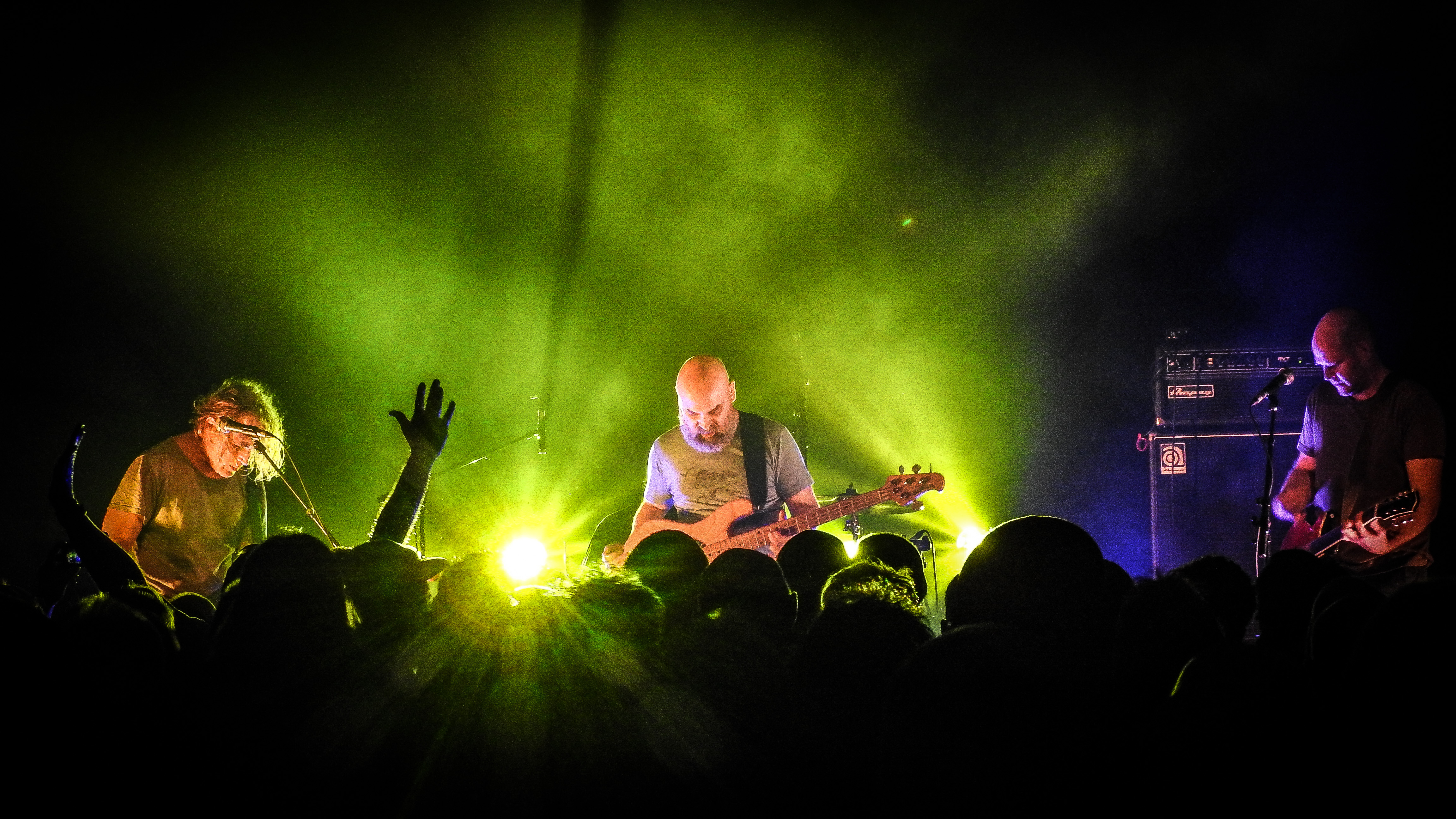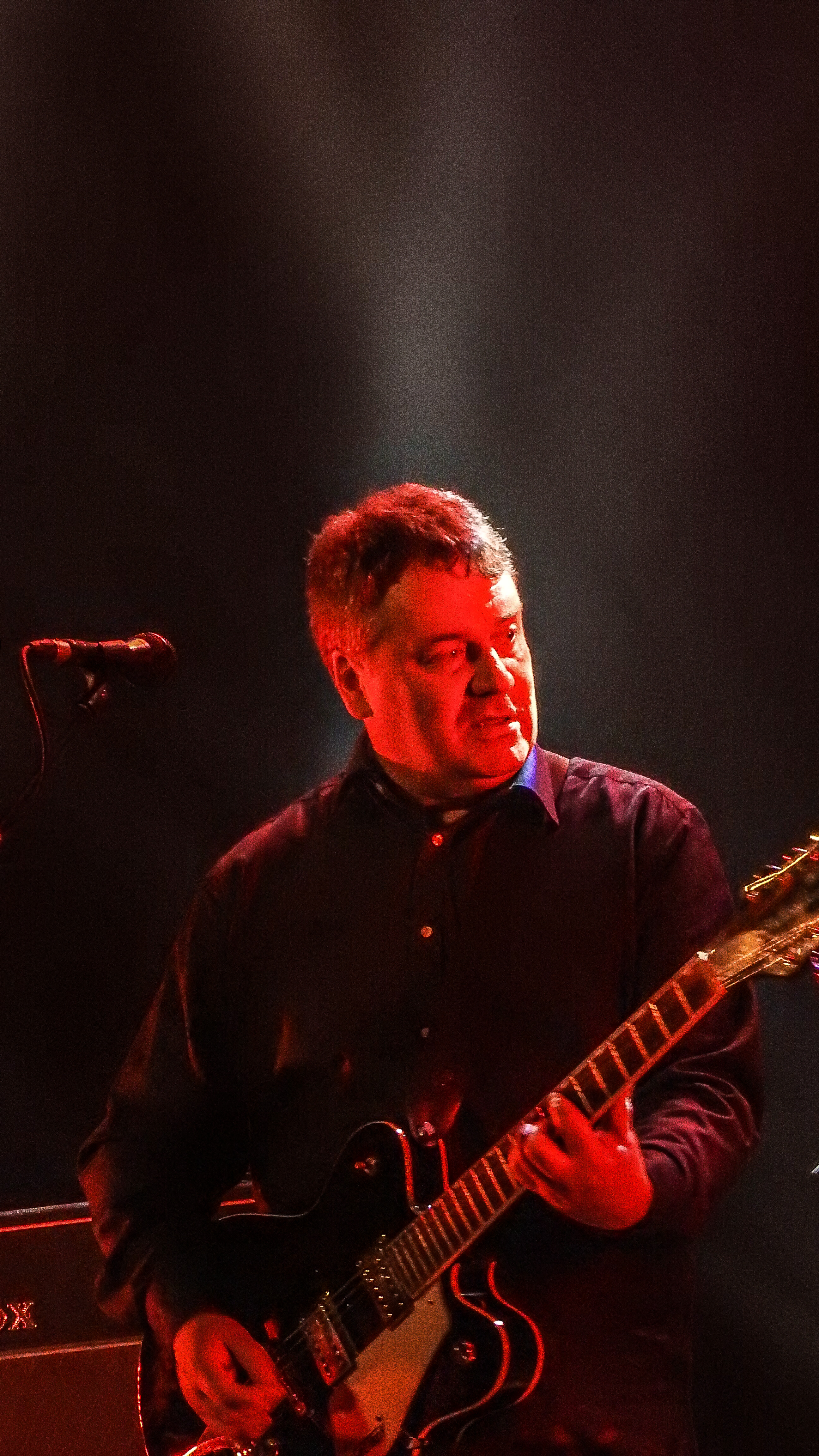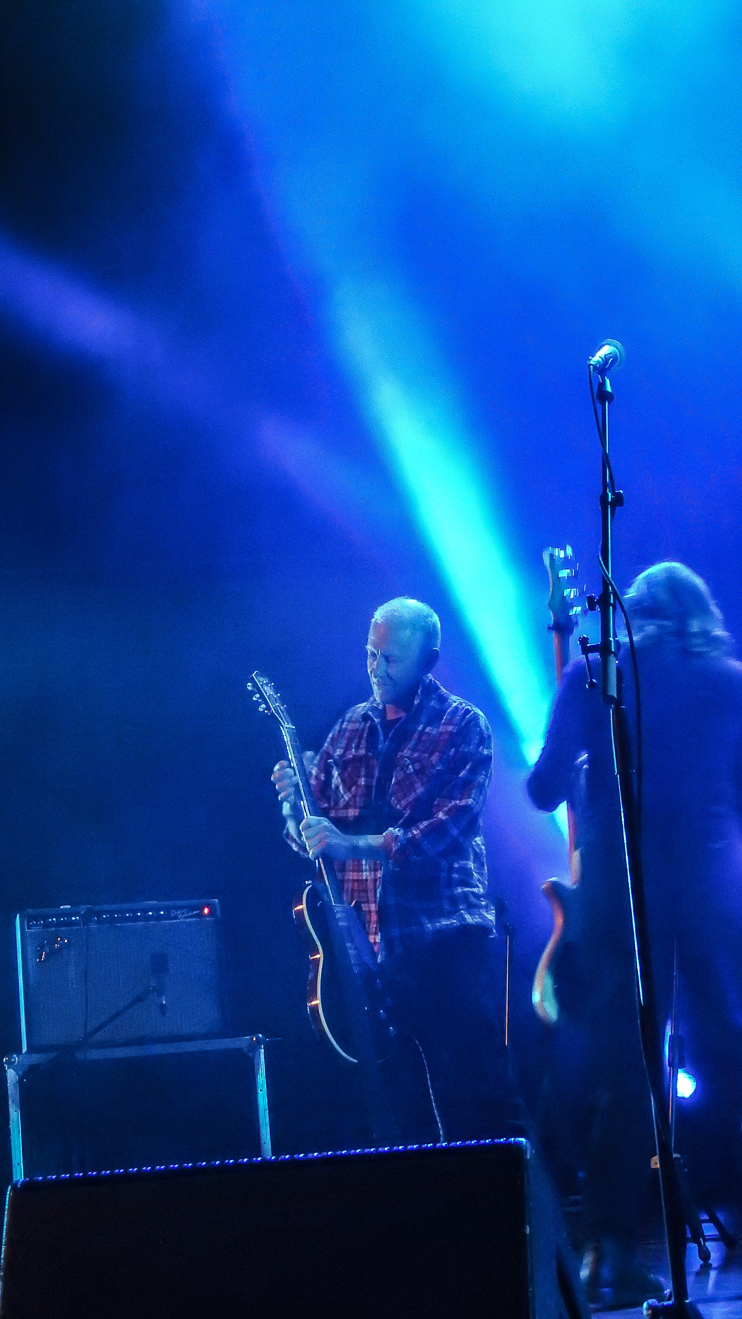 The marking of passing years were not lost on The Bat’s Robert Scott either. “Imagine what it’s be like in another 40 years,” he quipped, “as we come back on in wheel chairs and zimmer- frames.” Hopefully, they’ll still be as cool as they were tonight, as we all took a trip down memory lane with a selection of best moments from the band’s extensive and ongoing catalogue – ‘Made Up In Blue’, ‘Block Of Wood’, and of course, ‘North by North’, which finished the set. In between we got a selection of newer stuff from ‘Foothills’ and lost albums – a quick survey from over the years included ‘Trade in Silence’, a strumming ‘Field of Vision’ and a nicely done ‘’Singletons’. All appreciated as the crowd abandoned their seats to politely mosh around the big stage.