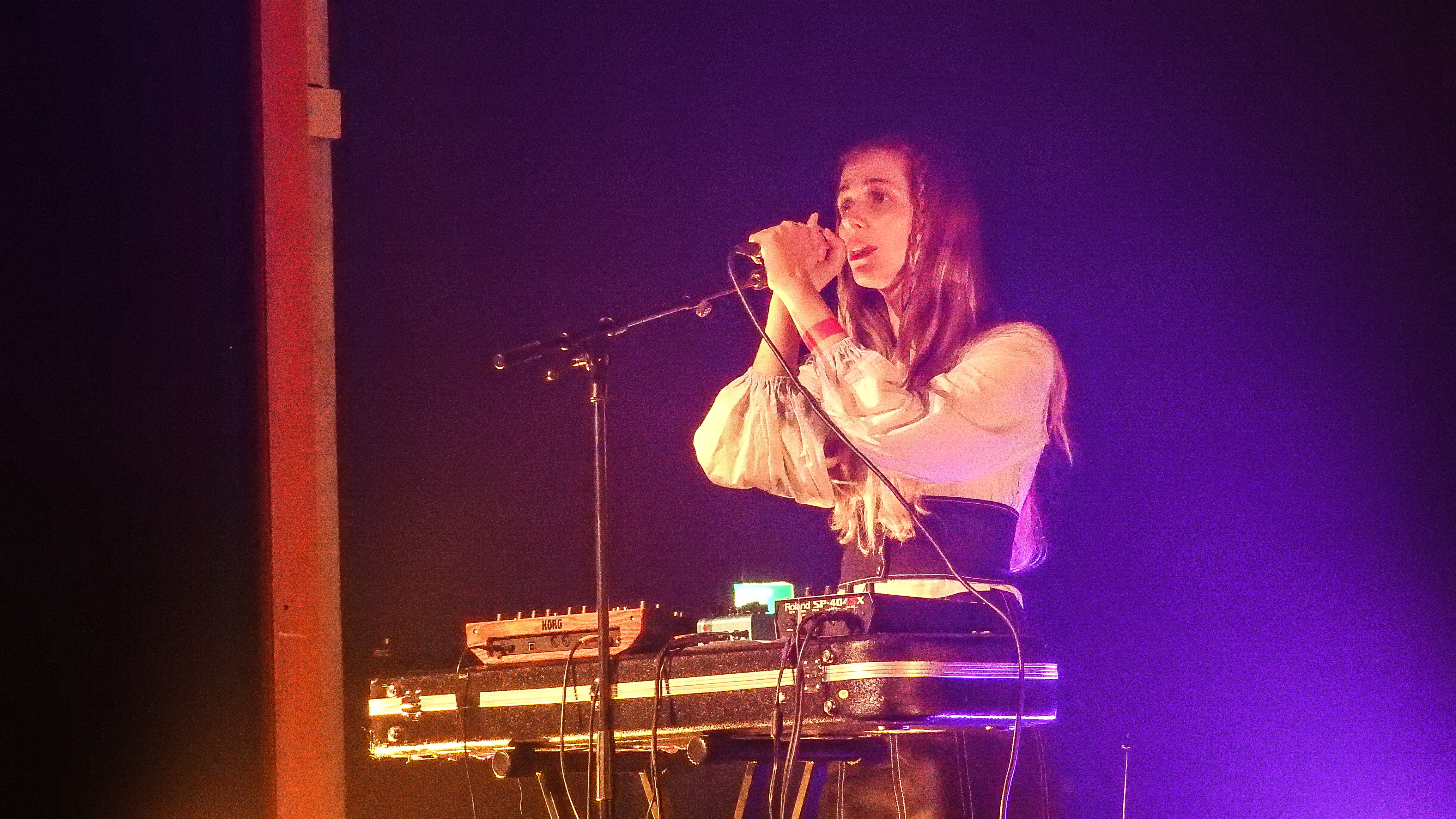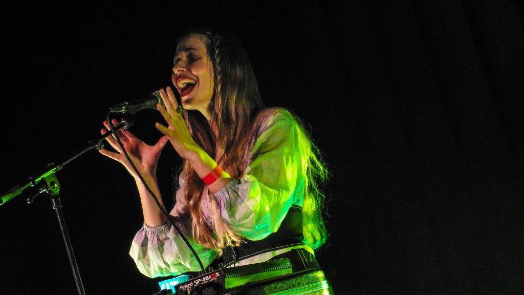 The night kicked off with dreamscape artists Purple Pilgrims who performed material from their sophomore record ‘Perfumed Earth’. Reading up, I found out that the to create this music the Nixon sisters, Clementine and Valentine, had retreated back to a cabin hidden deep in the wilds of Tapu, where they’d also made their 2016 debut ‘Eternal Delight’, and immersed themselves in an ethereal sonic world to create “ancient imagery expressed through a modern lens – folk songs played on synthesized instruments.”. A dreamy sort of mix between Kate Bush and Cocteau Twins.