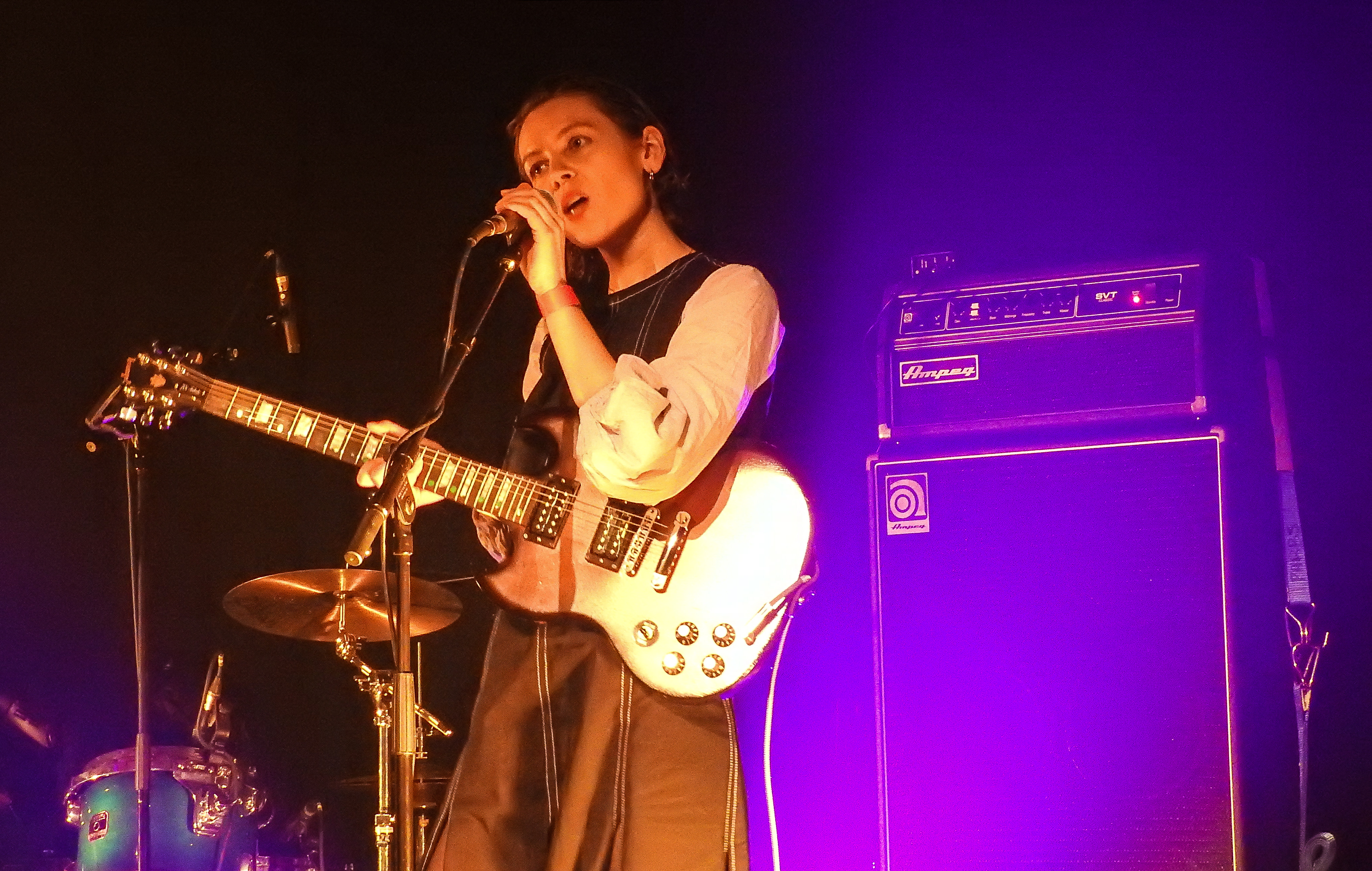 Hannah Topp (aka Aldous Harding) has been living in Wales of late. So, we were damn lucky she’d managed to slip through MIQ unscathed and was here for us tonight. She’s always a highlight and never fails to surprise and delight. Her voice was fine, fragile, and occasionally frivolous, with her usual austereness. I always enjoy the ‘personas’ she places over every song, which are a full body experience from face to playing stance. Tonight, I got to see how she frames up the new single ‘Old Peel’.