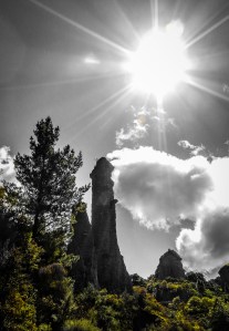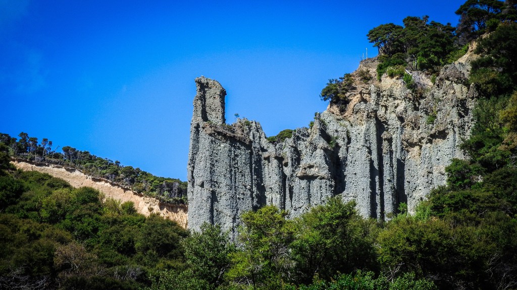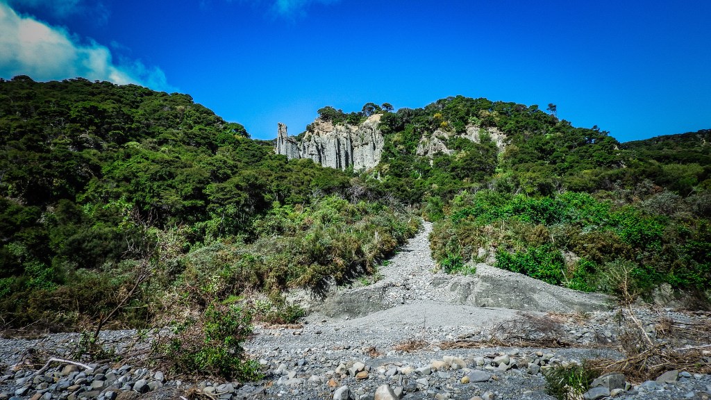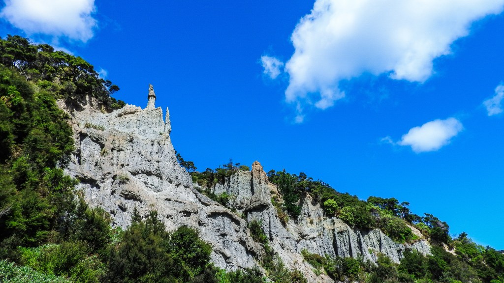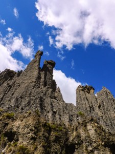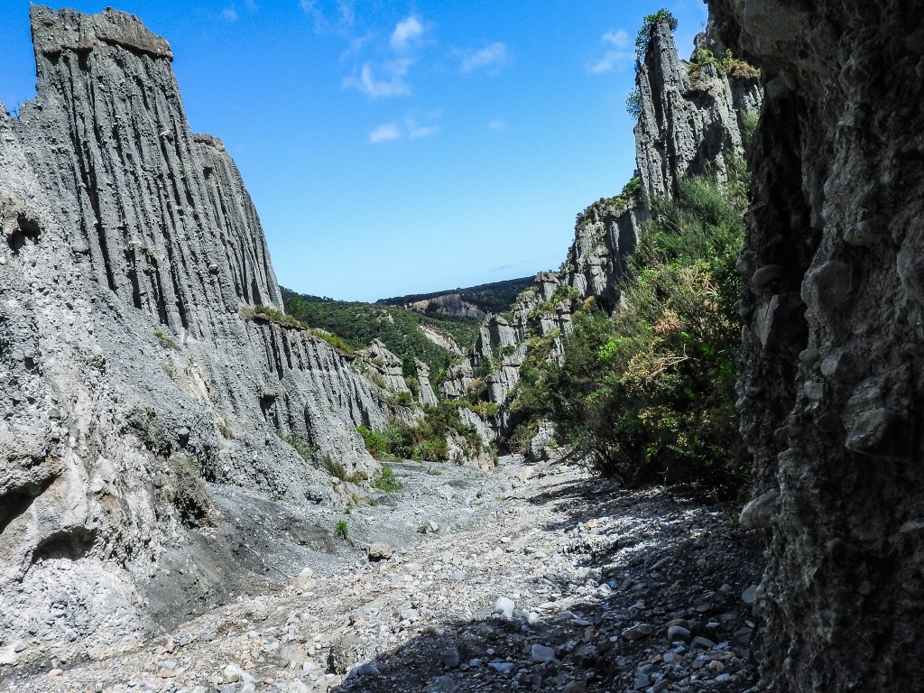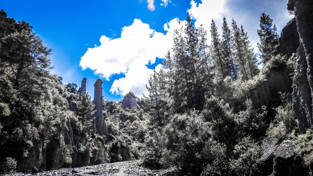 The Pūtangirua Pinnacles, are a geological formation and one of New Zealand’s best examples of badlands erosion, consisting of earth pillars or hoodoos found at head of a valley in the Aorangi Ranges.