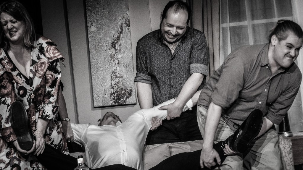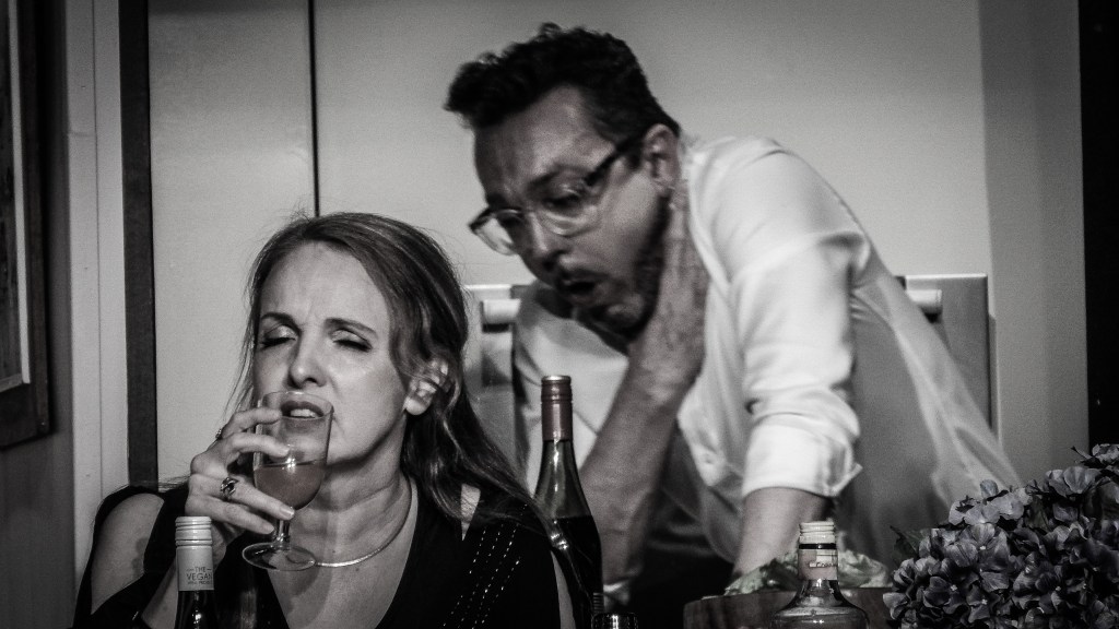 A group of friends gather for a dinner party in honour of one of their own having written and published a romance novel. But affairs have been taking places and upon revelation, one of the characters spikes another’s salad with nuts. What follows is a “what do we do now?” farce as an aspiring detective guest attempts to get to the bottom of it.