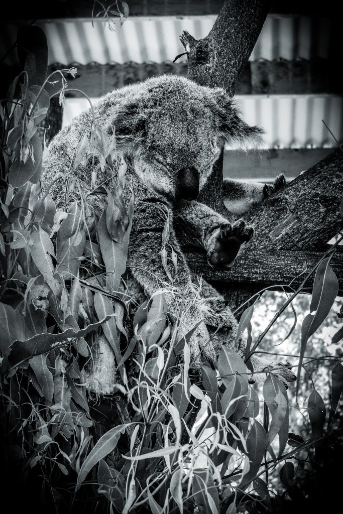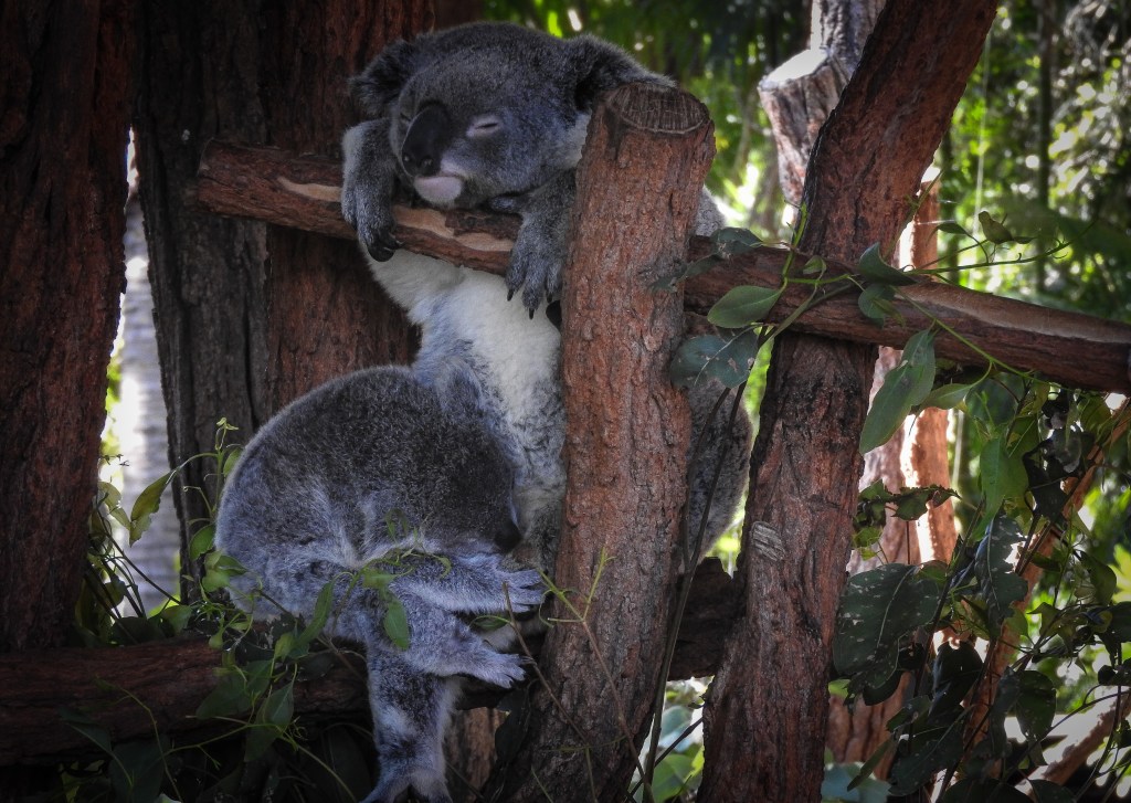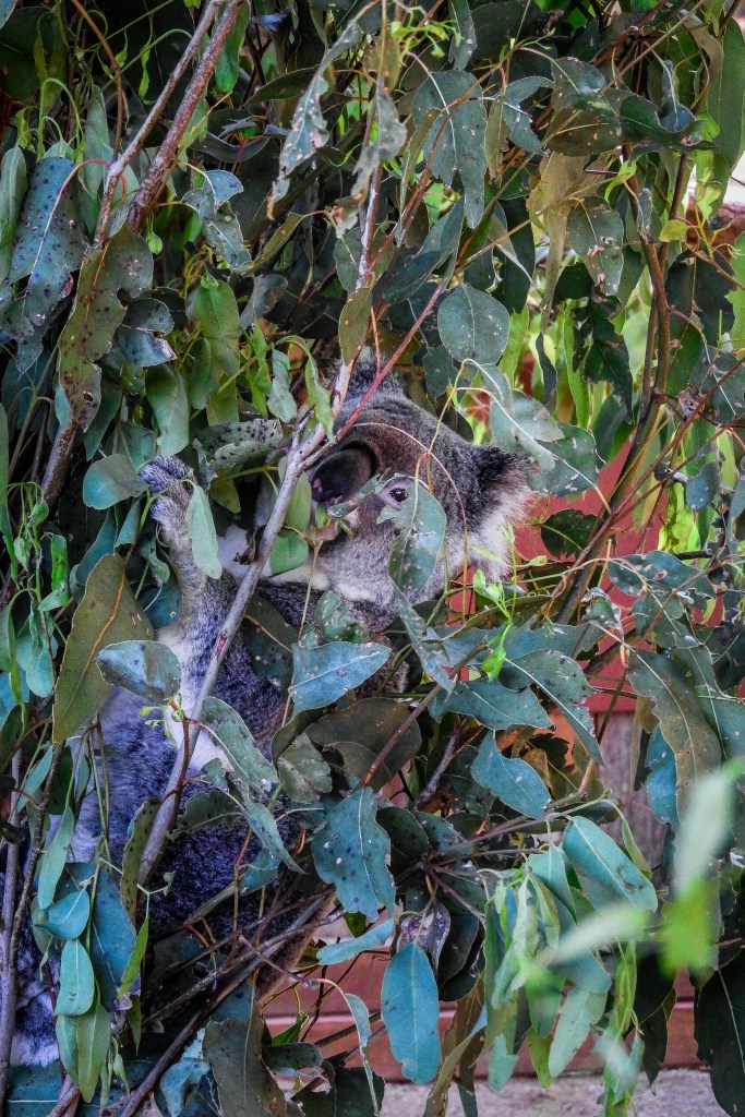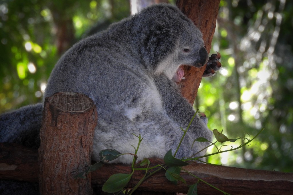 Koalas typically inhabit open Eucalyptus woodland, as the leaves of these trees make up most of their diet. This eucalypt diet has low nutritional and caloric content and contains toxic compounds that deter most other mammals from feeding on it. Koalas are largely sedentary and sleep up to twenty hours a day.