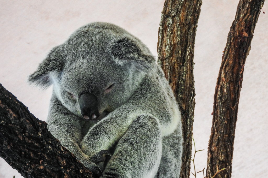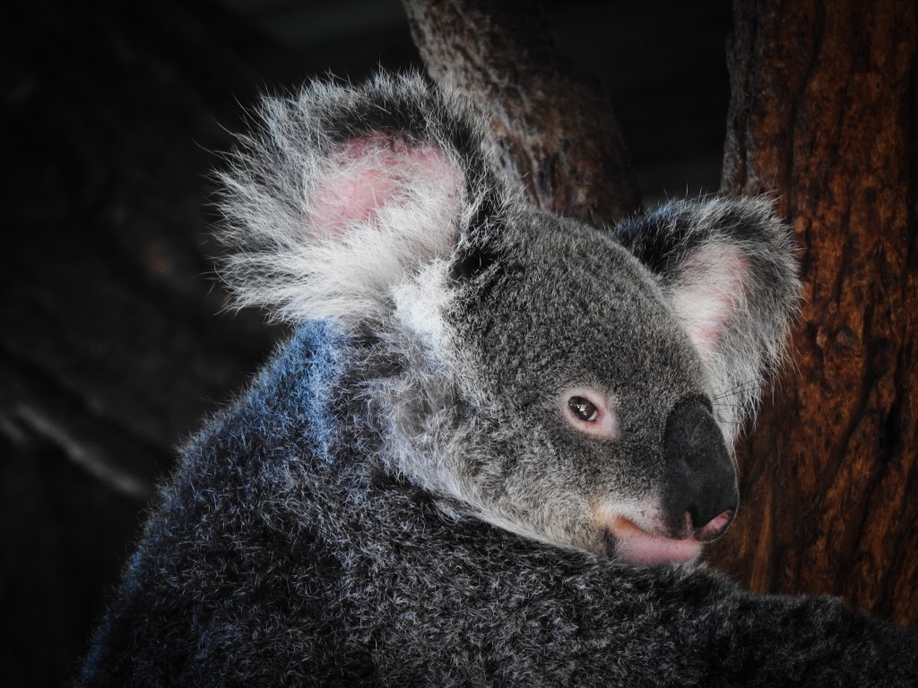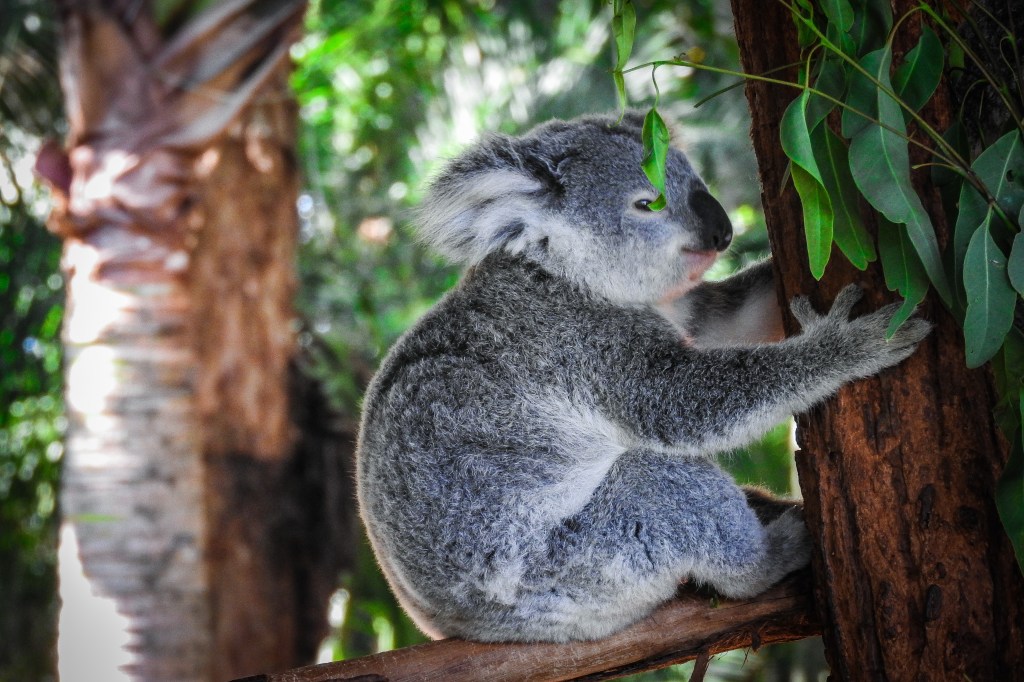 The koala is found in coastal areas of the mainland’s eastern and southern regions, inhabiting Queensland, New South Wales, Victoria, and South Australia. It is easily recognizable by its stout, tailless body and large head with round, fluffy ears and large, spoon-shaped nose.