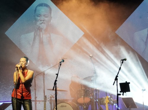 So far Kiwi artist Taylah has flown under my radar. Not much on the usual channels to date. Let’s hope that changes. But that’s the great thing about the FMP whanau, embracing new and up and coming talent. Taylah’s music is compelling and fiery. Her themes are about empowerment and correcting the balance in sexual politics. Her recent single Undies was all about that. Her poetic lyricism also draws on her own Māori heritage, too. She’s opened for Dragon, Hollie Smith and Troy Kingi. Tonight, she did three powerful songs – ‘Fire Fight’, her latest single Okay (“A love letter to my younger self about resilience”), and a blistering number, in the style of those big bombastic 50’s hits, called ‘Red Flags’. This was a true highlight, full of gusto and power – helped by appropriately dramatic lighting and graphics, a true trademark of every FMP show.